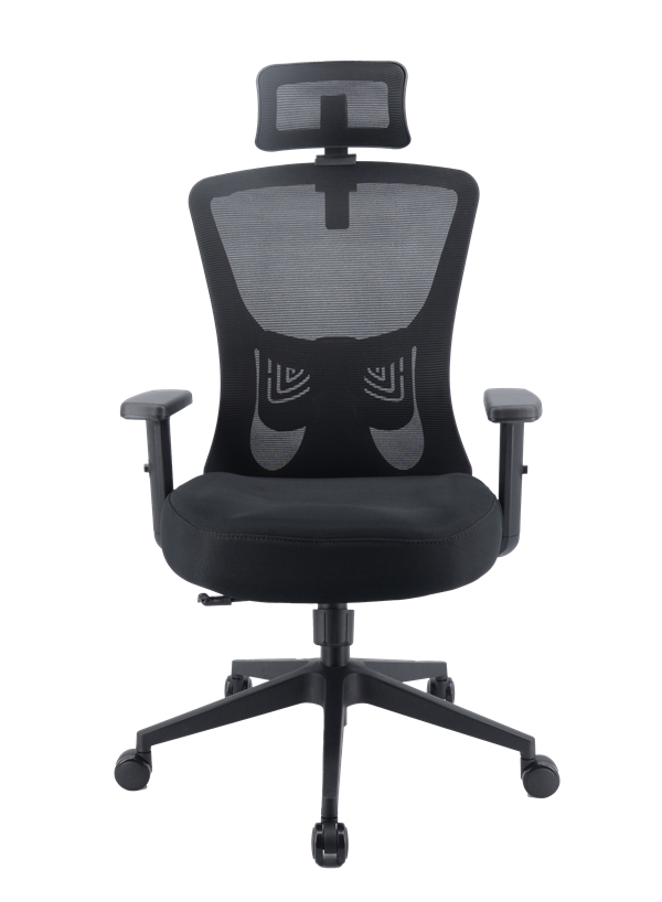 靠背采用黑色全新料加纤框架,活动头枕和软质固定腰靠,透气网布;
